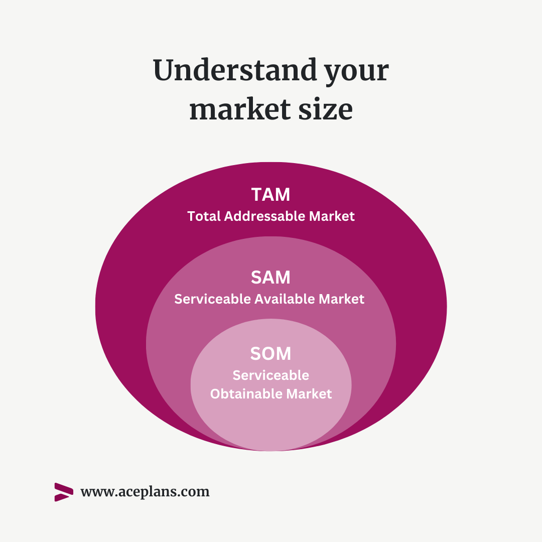 Estimate the size of your industry and check historical and future growth trends, especially for the niche segment of the industry you target. Try to discover your TAM, SAM and SOM: